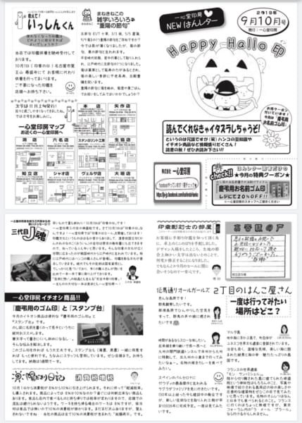 一心堂印房のニューズレター「はんレター」です。 ハンコ屋ならでは印鑑の豆知識、お得情報満載です。 ハロウィンのイラストの表紙が目印です。各店頭に置いてますので、ぜひお読み下さい‼