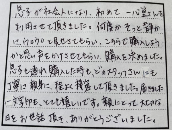 今後の励みにもなる嬉しいお言葉を下さり、スタッフ一同喜んでおります。