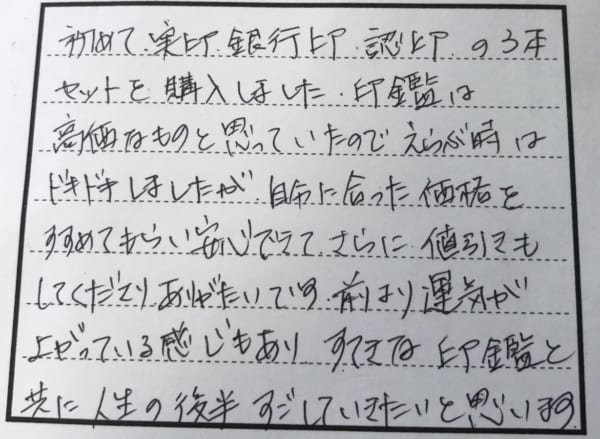 ありがとうございました。印鑑は自分自身の分身とも言われています。